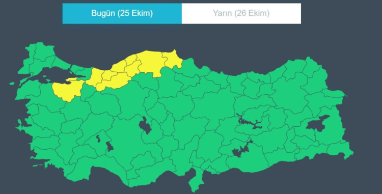 Uyarı alan iller arasında Bolu, Bursa, Kastamonu, Sakarya, Sinop, Zonguldak, Bartın, Yalova, Karabük ve Düzce yer aldı.