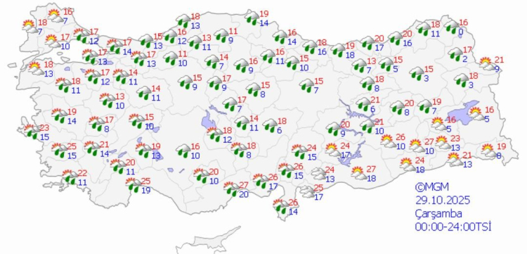 29 EKİM ÇARŞAMBA HAVA DURUMU