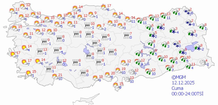 12 ARALIK CUMA HARİTALI HAVA DURUMU