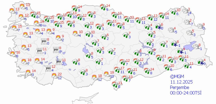 11 ARALIK PERŞEMBE HARİTALI HAVA DURUMU