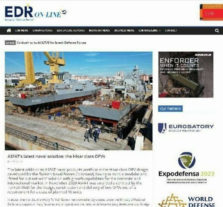Batı medyası, Milli Savunma Bakanlığı'na bağlı Askeri Fabrika ve Tersane İşletme AŞ (ASFAT) tarafından yürütülen projesine hayran kalırken açık deniz karakol gemileri Akhisar ve Koçhisar'dan övgüyle bahsetti.