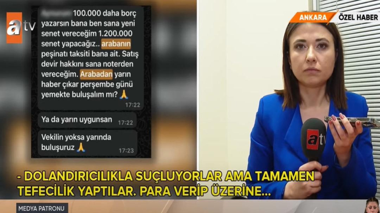 Medya patronunun eşi de suçlamalar karşısında yaptığı açıklamasında “Dolandırıcılıkla suçluyorlar ama tamamen tefecilik yaptılar para verip üzerine faiz istediler. Nakit istediler, çok fazlasını istediler” dedi.
