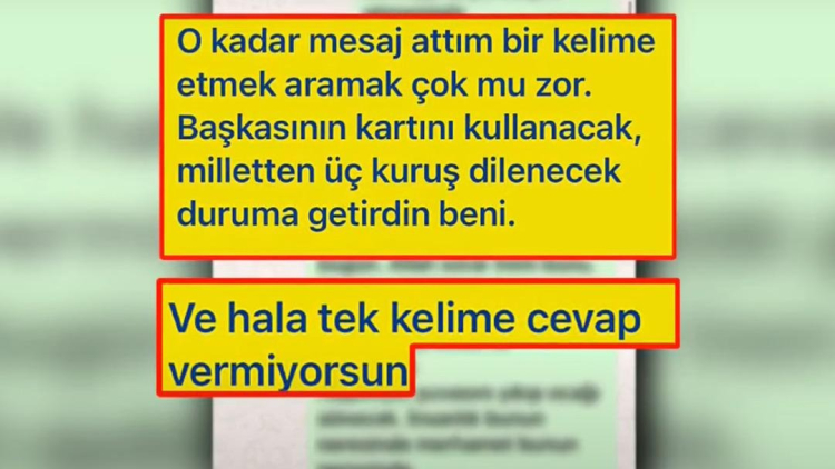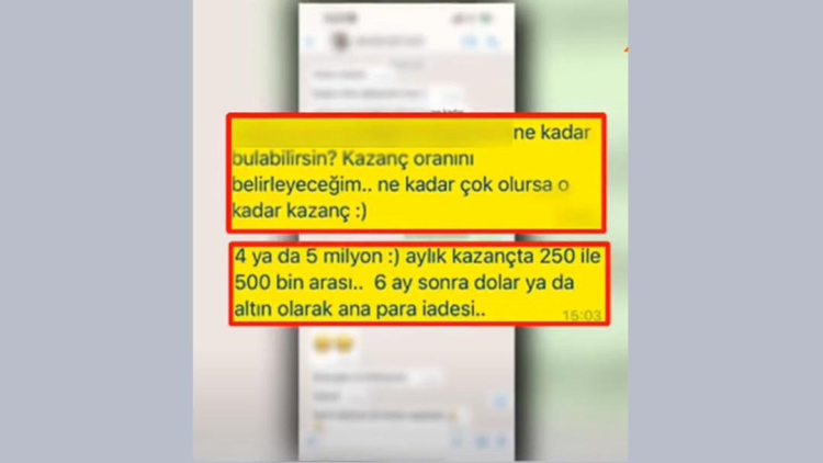 “6 milyon düzeyinde dolandırıldık. Ben hani yalan olduğunu söylemek istiyorum bunun. Bize borç alacak ilişkisi kurdu. Hatta WhatsApp ifadelerine de hep borç alacak yazmış ki bu alacak davası olsun. Soruşturma düşsün, yargılanmayalım diye ama diğer mağdurları kar vadiyle kandırmıştı. ‘40 bin lira ihtiyacım var. Hemen 3 gün sonra göndereceğim’ dedi. Sonra 100, 150 oldu. 150, 200 oldu. Ama hep gününden önce ödedi ve gönderirken de 2 bin lira, 3 bin lira, 4 bin lira fazla attı hep.”