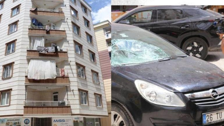 Siirt'te 1,5 yaşındaki çocuk 5. kattan otomobilin üzerine düştü. Çocuğun tedavisi sürerken düşme anı güvenlik kamerasınca kaydedildi.