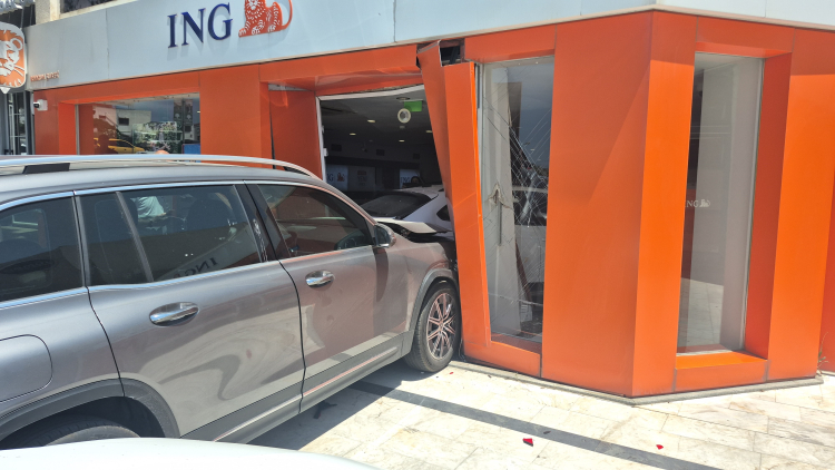 Kaza, Kıbrıs Şehitleri Caddesi'nde faaliyet gösteren bir bankada meydana geldi. Cipi ile bankanın önüne gelen sürücü, bir anda hakimiyetini kaybedip, banka önündeki otomobile çarptı. Çarpmanın etkisiyle otomobil sürüklenerek bankanın içerisine girdi. Cipin de ön kısmı bankanın içerisinde kaldı. Kazada park halindeki başka bir araç da hasar gördü. Kaza anında banka çalışanları büyük korku ve panik yaşadı. Kazayı görenler ise kısa süreli şaşkınlık yaşadı. İhbarın ardından 112 Acil Sağlık ve polis ekipleri olay yerine geldi. İsminin S.A. olduğu öğrenilen yaralı, ambulansta tedavi edildi.