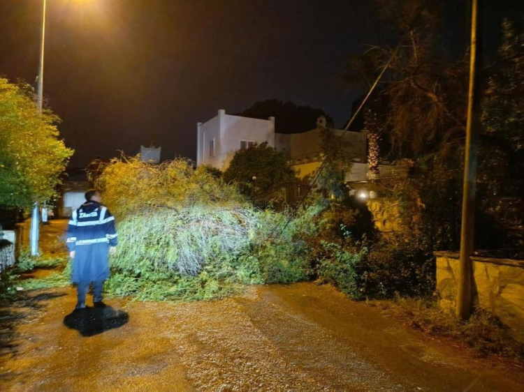 Diğer yandan Ortakent, Bitez, Gümbet mahallerinde fırtına nedeniyle bazı noktalarda ağaçlar devrildi. Devrilen ağaçlar nedeniyle bazı yollar kapandı. Zabıta ekipleri tarafından ağaçlar yoldan kaldırılırken, yol kenarlarına düşen dalların tehlike saçmaması için kaldırım kenarları şeritle kapatıldı. Bugün yapılması planlanan Bodrum-Datça arası feribot seferleri de iptal edildi. Sahiller fırtına nedeniyle boş kalırken, kıyıya vuran dalgaların boyu yer yer 3 metreye ulaştı.