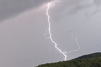 Muğla'nın Menteşe ilçesinde etkili olan gök gürültülü sağanak yağış sırasında dağa düşen bir şimşek, böyle görüntülendi.