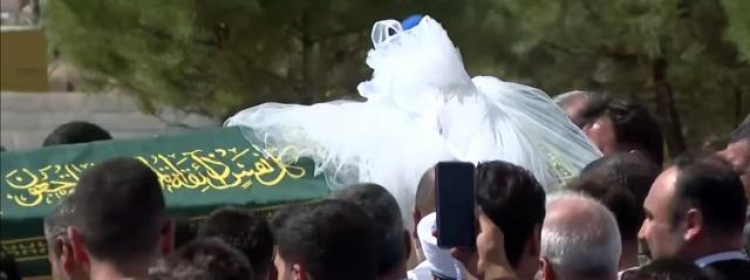 Narin'i taşıyan tabuta beyaz çocuk gelinliği konuldu.