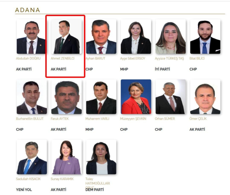 Öte yandan Zenbilci’nin ismi TBMM’nin resmi internet sitesinde AK Parti’nin Adana milletvekilleri arasında yer alırken AK Parti'nin internet sitesinde henüz yer almaması ise dikkat çekti.