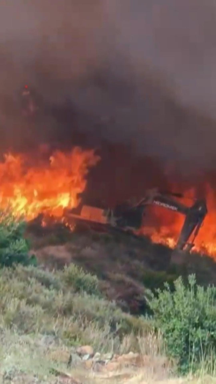 Furkan Ulaş’ın kullandığı iş makinesi, yangın sırasında sıcaklıktan hortumları eridiği için arıza yaptı. Kepçeyi terk etmek zorunda kalan Ulaş, kolundan yanarak yaralandı ancak daha büyük bir felaketten son anda kurtuldu.