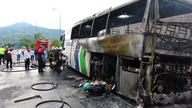 Öte yandan yolcular, Ordu’nun Gölköy ilçesinden hareket eden otobüsün yolda arıza yaptığını ve sanayide tamir edildiğini söyledi. Yolcular, yaklaşık 2 süren tamirat sonrası sanayiden ayrıldıklarını, bir süre sonra ise yangın çıktığını iddia etti.