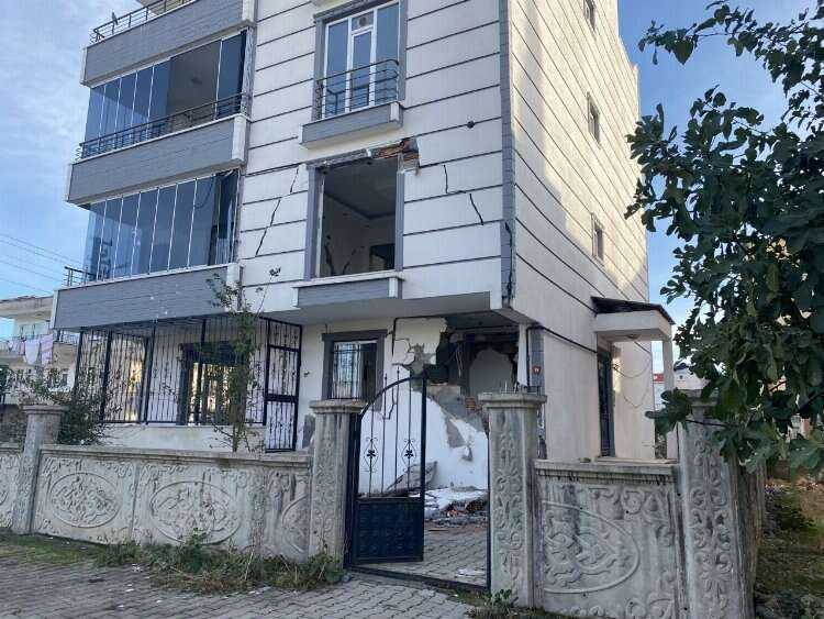 Adıyaman’da, orta hasarlı bir binanın bahçe kapısı çalındı.