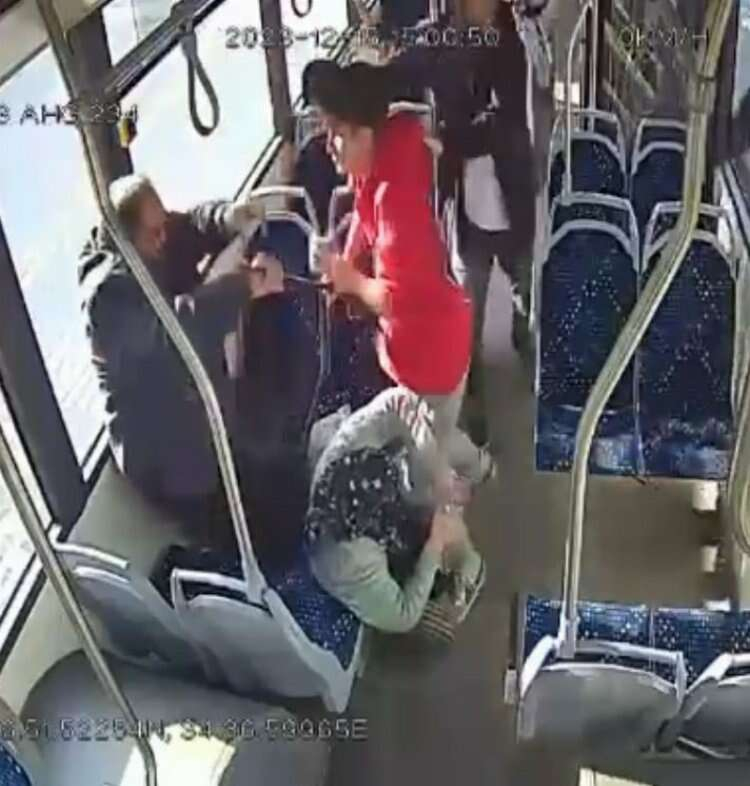 Kendine hakim olamayan okul müdürü yaşlı adamın tepesine çıkıp darp etti. O anlar ise otobüsün güvenlik kamerasına saniye saniye yansıdı.
