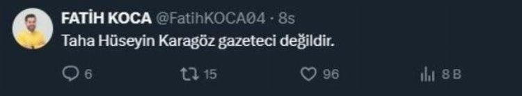 İYİ Parti Genel İdare Kurulu Üyesi Fatih Koca ise "Taha Hüseyin Karagöz gazeteci değildir." dedi.