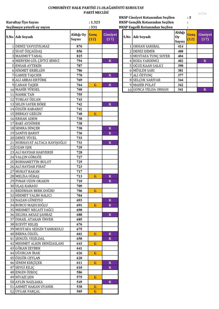 Geçtiğimiz kurultayda Salıcı’nın listesinden aday olup PM’ye girmeyi başaran Semra Dinçer, Ali Haydar Hakverdi, Saniye Barut, Deniz Yavuzyılmaz ve Aylin Nazlıaka ise bu kez Özel’in listesinden aday gösterildi.