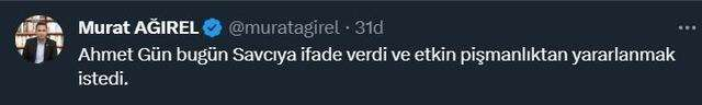 Söz konusu iddiayı gündeme getiren gazeteci Murat Ağırel, yaptığı açıklamada "Ahmet Gün bugün Savcıya ifade verdi ve etkin pişmanlıktan yararlanmak istedi." ifadelerini kullandı.