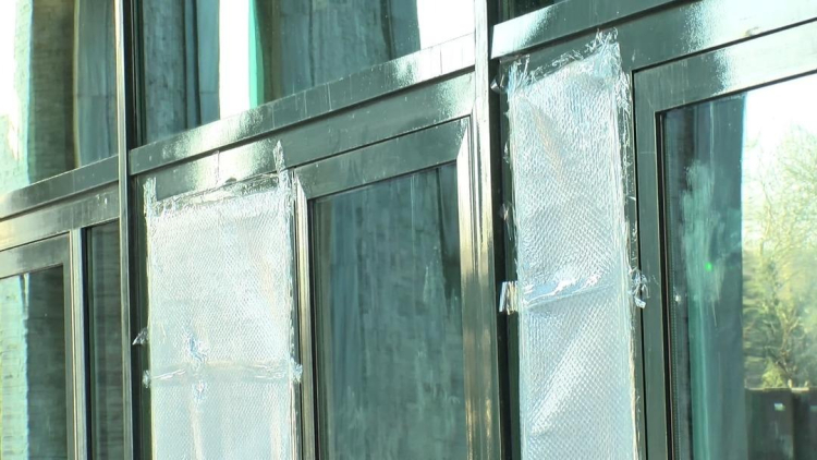 Hasar gün aydınlanınca ortaya çıktı. Kırılan camlar geçici olarak naylon ile kapatılırken, camlardaki ayakkabı izleri dikkat çekti.