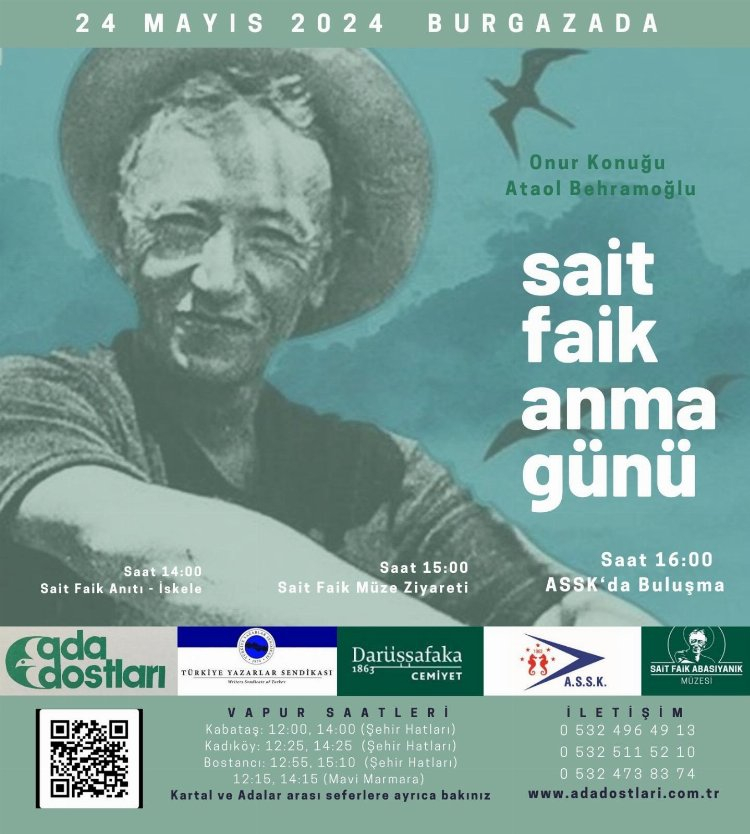 Ada Dostları, Türkiye Yazarlar Sendikası, Darüşşafaka Cemiyeti, Adalar Su Sporları Kulübü ve Burgazada Sait Faik Abasıyanık Müzesi iş birliğiyle 24 Mayıs’ta düzenlenecek etkinliğin bu yılki onur konuğu Ataol Behramoğlu.