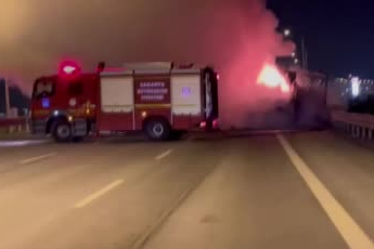 Edinilen bilgiye göre, Kuzey Marmara Otoyolu Akyazı Gişeler mevkii Ankara istikametinde seyir eden H.E. idaresindeki 64 FL 009 plakalı ambar malzemesi yüklü tırın dorsesinde henüz belirlenemeyen bir sebeple yangın çıktı. Yangını fark eden sürücü, çekiciyi dorseden ayırarak durumu 112 Acil Çağrı Merkezi’ne bildirdi. İhbar üzerine bölgeye çok sayıda itfaiye ve jandarma ekibi sevk edildi. Ekipler, adeta alev topuna dönen dorsedeki yangını kısa sürede kontrol altına alarak söndürdü. Soğutma çalışmalarının devam ettiği yangında trafik tek şeritten kontrollü olarak sağlanırken, olaya ilişkin inceleme başlatıldı.