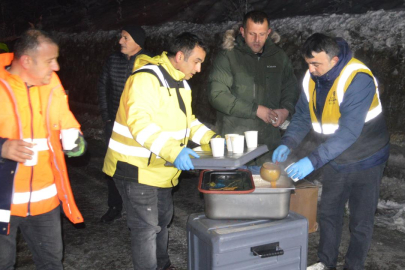 Valilik ve belediye görevlileri, yolda mahsur kalanlar ile çalışmalara katılan polis, Karayolları, itfaiye ve sağlık ekiplerine sıcak çorba ikramında bulundu.