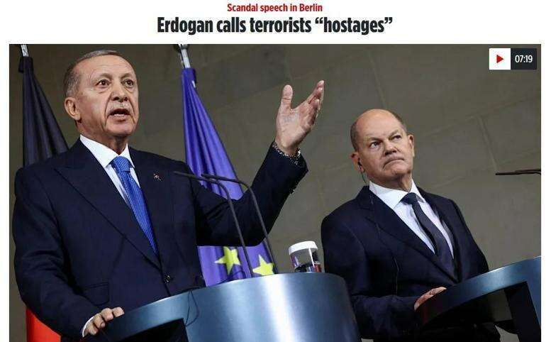 Gazete, Erdoğan'ın Cuma günü Almanya'nın Holokost'tan duyduğu suçluluk duygusu nedeniyle Gazze savaşında İsrail'i desteklediğini söyleyerek yaptığı eleştirileri yazarak, Cumhurbaşkanının bu hafta başında İsrail'in Gazze'de savaş suçları işleyen bir 'terör devleti' olduğunu söylediğini de hatırlattı.