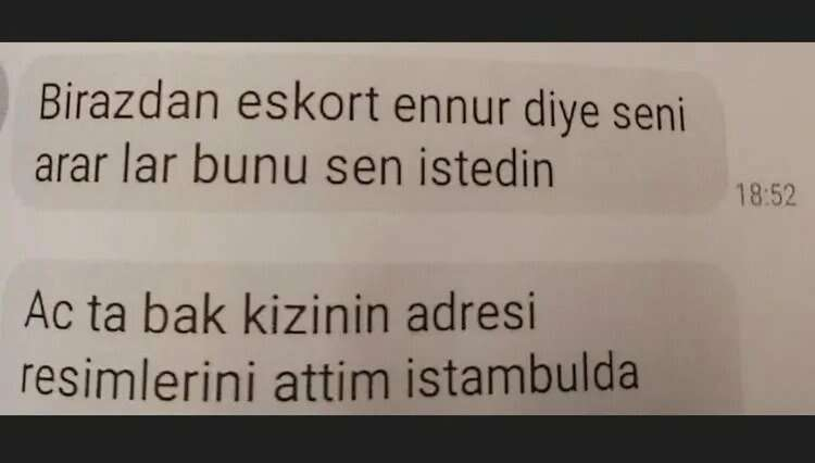 Sabah'tan Arzu Kaya'nın haberine göre gözü dönen Bilal A. eski sevgilisi Nuray U.'ya, "Tamam Nuray, Ennur'u yaktın şimdi. Kızının bir sürü fotoğrafı, evinin adresi var. Eskort diye şimdi rezil edeceğim.K.hpe, bak kızını ne yapacağım şimdi. Birazdan eskort Ennur diye seni ararlar. Bunu sen istedin. Bak kızının adresini, resimlerini attım" dedi. Tehditle de kalmayıp gerçekten küçük çocuğun fotoğraflarını ve iletişim bilgilerini sosyal medya sitelerinde eskort olarak yaydı.