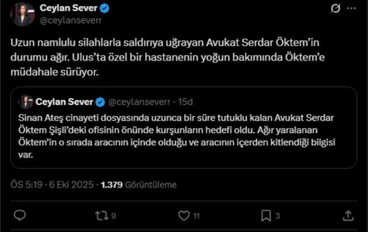 Öte yandan Habertürk muhabiri Ceylan Sever saldırıya ilişkin detayları paylaştı. Sever, Öktem'in aracının içerden kitlendiği bilgisi olduğunu aktardı. Saldırının uzun namlulu silahlarla yapıldığı ifade edilirken.