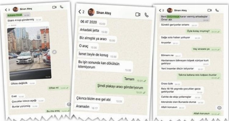 Eski Ülkü Ocakları Genel Başkanı Sinan Ateş'in 2022'de öldürülmesine ilişkin iddianame geçen hafta hazırlandı. Ateş'in iddianameye girmeyen WhatsApp yazışmaları ortaya çıktı. Yazışmalarda Ateş'in "Beni öldürmeye karar vermişler Ömer abi" mesajı dikkat çekti.
