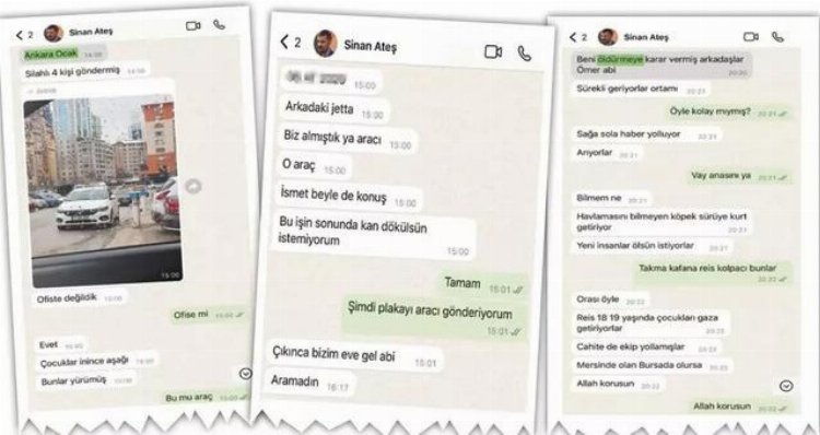 Sinan Ateş'in öldürülmeden önce bir kişiyle mesajlaştığı ve bu mesajlaşma sırasında 'Beni öldürmek istiyorlar' dediği de ortaya çıkmıştı.