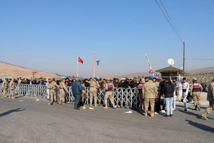 Sabahın erken saatlerinde sıraya giren Suriyeliler, gümrük işlemleri için beklerken, kalabalık arasında kadın ve çocukların da yoğun olduğu görüldü.