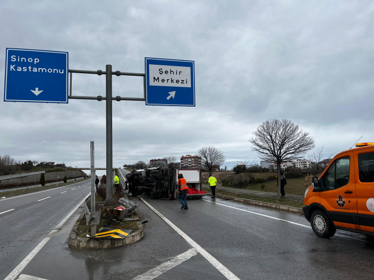 Kaza, saat 12.30 sıralarında Samsun-Sinop yolu üzerinde meydana geldi. Edinilenbilgilere göre, C.Z. (68) idaresindeki plakası henüz öğrenilemeyen kamyonet, Gerze yönüne dönüş yaptığı sırada kontrolden çıktı. Savrulan araç yol kenarındaki bariyerlere çarptıktan sonra devrildi. Kazayı gören diğer sürücülerin ihbarı üzerine olay yerine ekipler sevk edildi. Yapılan kontrollerde sürücünün sağlık durumunun iyi olduğu belirlendi. Kaza sonrası araçta maddi hasar meydana gelirken, devrilen kamyonet ekiplerin çalışmasının ardından bulunduğu yerden kaldırıldı.