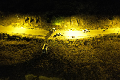Kamyonetin uçurumdan yuvarlanmaması için kamyonet çekiciye bağlanarak sabit kalması sağlandı. Polis ekipleri kamyonetin güvenliğini aldıktan sonra araçta inceleme yaptı.