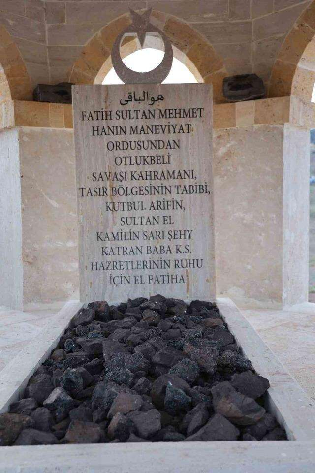 Esrarengiz türbe hikayesiyle de bölgede petrol bulunabileceğine işaret ediyor. Yakın bir zamanda restore edilen türbesinin kitabesinde yer alan rivayete göre; Fatih Sultan Mehmet’in 1473’te Otlukbeli seferinde ordusuyla yolu köyden geçer. Ancak atlar uyuz yüzünden ilerleyemez hale gelir. Türbede mezarı bulunan Katran Baba olarak bilinen Sultan El Kamilin Sarı Şeyh’in asasını vurduğu yerden katran çıkmaya başlar. Bu katran atlara sürülür ve atlar şifa bulur. Fatih Sultan Mehmet Akkoyunlu Sultanı Uzun Hasan ile savaşmak için yoluna devam ederken Katran Baba köyde kalıp talebe yetiştirmeye devam eder.
