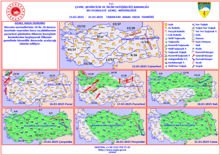 Genel Müdürlük, halen mevsim normallerinin 10 ila 15 derece üzerinde seyreden hava sıcaklıklarının, ani düşüş ile birlikte tarımsal faaliyetlerin olduğu bölgelerde zirai don meydana gelebileceği uyarısı yaptı.