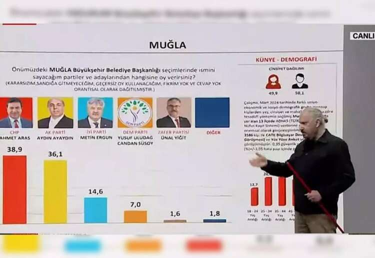 SONAR Araştırma, son seçim anketi sonuçlarını canlı yayında paylaştı. Şirket kurucusu Hakan Bayrakçı, Bolu'da Tanju Özcan'ın her kesimden oy aldığına dikkatleri çekerken, Muğla'da durumun başa baş olduğunu ifade ederek 'Çok şaşırdım' dedi.