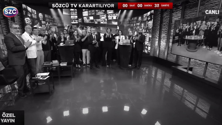 Sözcü Televizyonu, RTÜK'ün verdiği kararın ardından 09.07.2025 tarihinde saat 00.00 itibarıyla 10 gün süreyle kapatıldı. Son anlarında ekran yüzlerini, reji ekibini ve yöneticilerini ekrana alan Sözcü TV, siyah beyaz yayın yaptı.