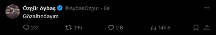 Aybaş, sosyal medya hesabından yalnızca, "Gözaltındayım" paylaşımı yaptı.