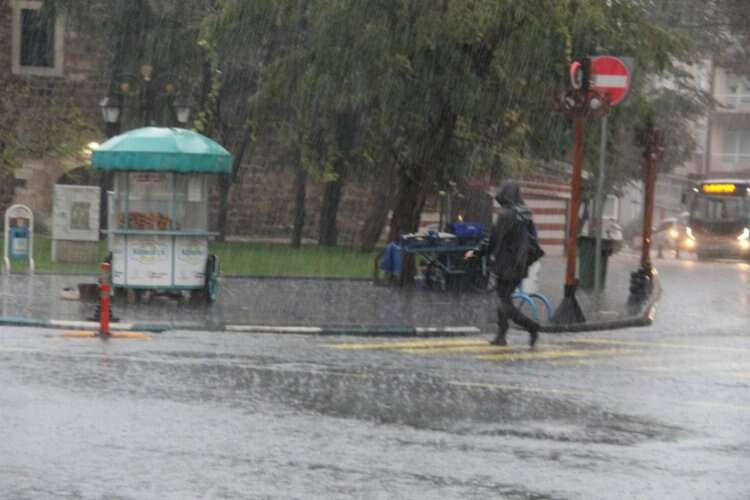 Kentte sabah saatlerinde aniden başlayan sağanak, zaman zaman etkilisini artırıyor.