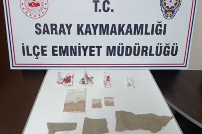 Saray ilçesinde uyuşturucu madde imal ve ticareti yapan şahısların yakalanması, deşifre edilmesine yönelik yapılan çalışmalar çerçevesinde, İlçe Emniyet Müdürlüğü Asayiş Büro ekipleri, Ö.L. isimli şüphelinin uyuşturucu madde kullandığı ve ticaretini yaptığı bilgisine ulaştılar. Harekete geçen ekipler Ö.L. isimli şüphelinin evinde gerçekleştirdikleri aramalarda 19 gram eroin olduğu değerlendirilen uyuşturucu ve uyarıcı madde, 3 parça halinde yaklaşık 600 içimlik uyuşturucu madde emdirilmiş peçete, 2 gram bonzai olduğu değerlendirilen uyuşturucu ve uyarıcı madde ele geçirdi.