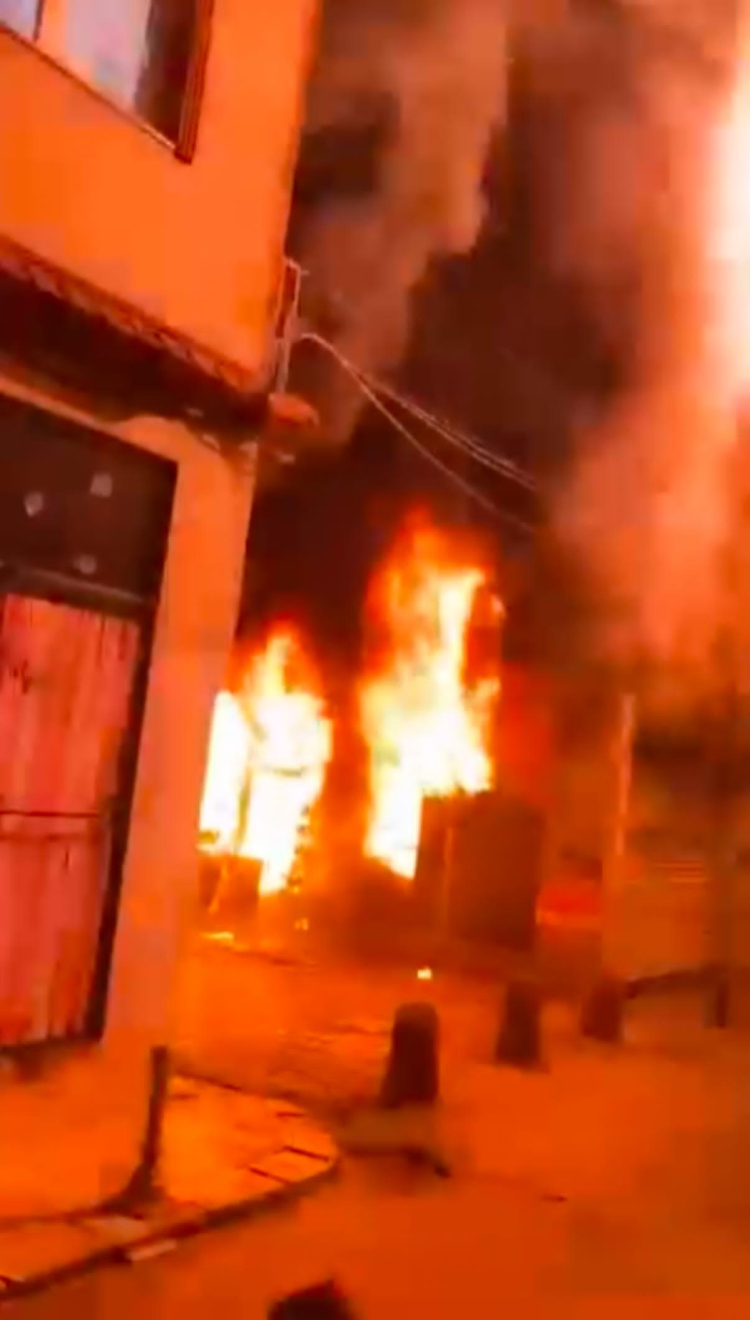 Edinilen bilgiye göre sokak üzerinde bulunan terzi dükkanında henüz bilinmeyen bir nedenle yangın çıktı. Dükkandan alevlerin çıktığını gören çevredeki vatandaşlar, itfaiye ekiplerine ihbarda bulundu. Alevlerin elektrik direğine sıçramasıyla patlama yaşandı. Çevredekiler patlama nedeniyle kısa süreli panik yaşadı. Olay yerine gelen itfaiye ekiplerinin müdahalesi sonrası yangın kontrol altına alındı. Olayda yaralanan olmazken dükkan kullanılmaz hale geldi. Yangını çevredekiler cep telefonu kamerasıyla görüntüledi.