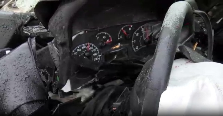 Tırın altında kağıt gibi ezilen aracın hız göstergesi dikkat çekti