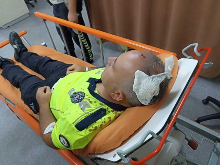 Ordu’da Abdullah D., ehliyetsiz ve kasksız motosiklet kullanan 15 yaşındaki A.A.D.'ye cezai işlem uygulayan polisin başına sandalye ile vurdu.