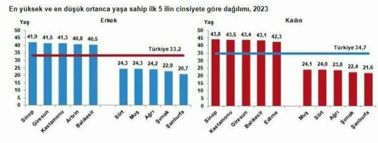 KADINLARDA VE ERKEKLERDE EN YÜKSEK ORTANCA YAŞA SAHİP İL SİNOP OLDU