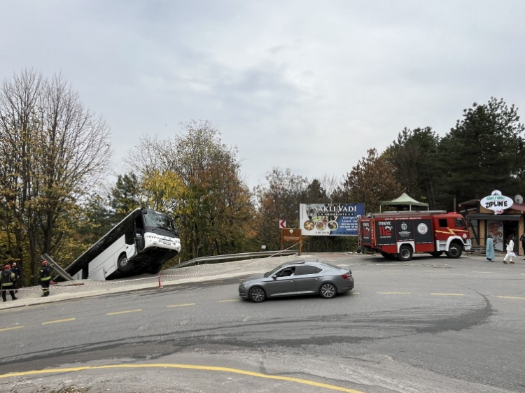 Kocaeli'nin Kartepe ilçesinde yokuşta park edilen tur otobüsü, hareket edince bariyeri aşıp şarampole düştü.