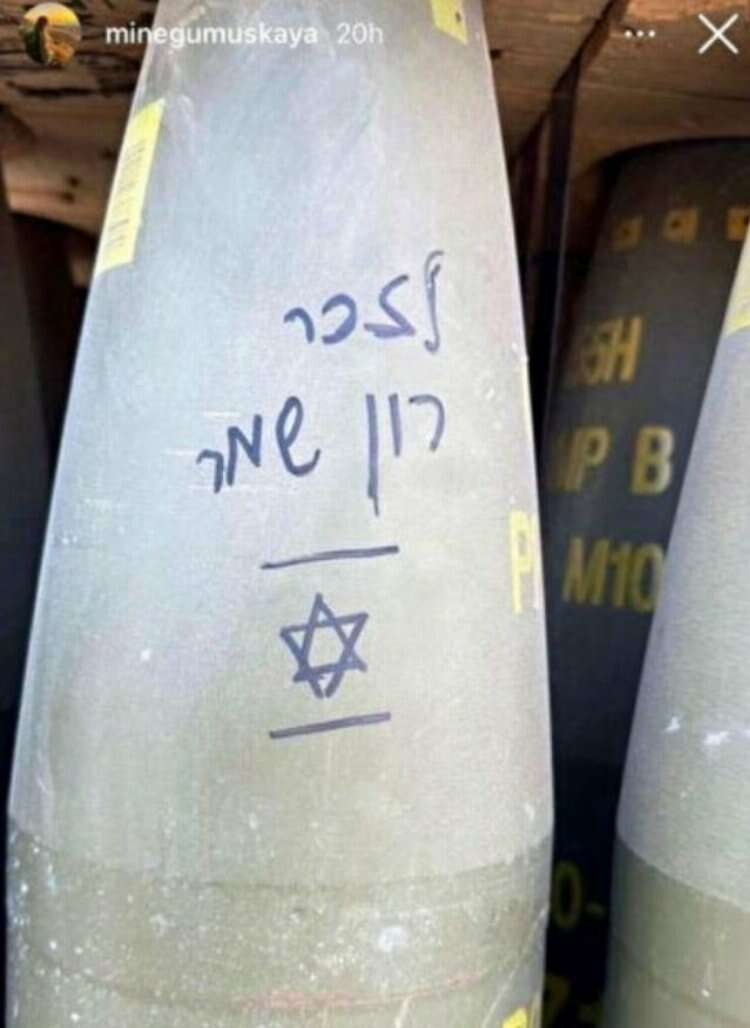 Gümüşkaya'nın bir başka paylaşımında ise üzerinde İbranice yazıların bulunduğu bombalar yer aldı.