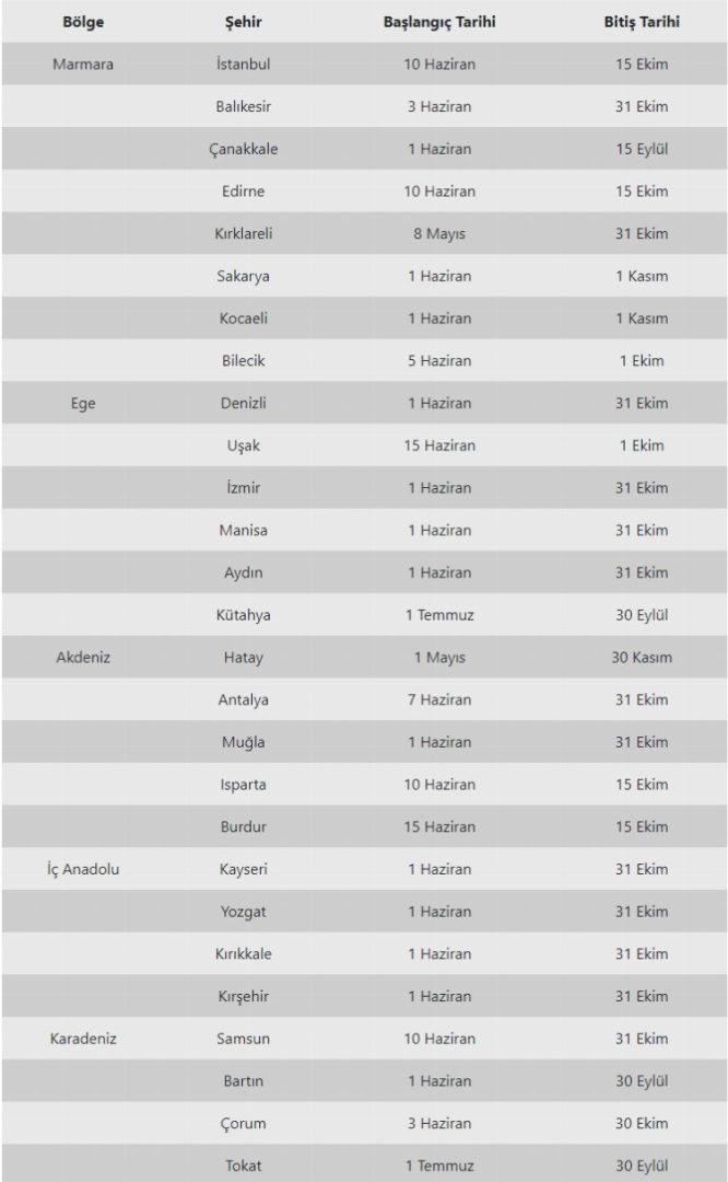 Türkiye genelinde 11 Haziran itibarıyla ormanlara girişin yasak olduğu iller ve tarihler şöyle: