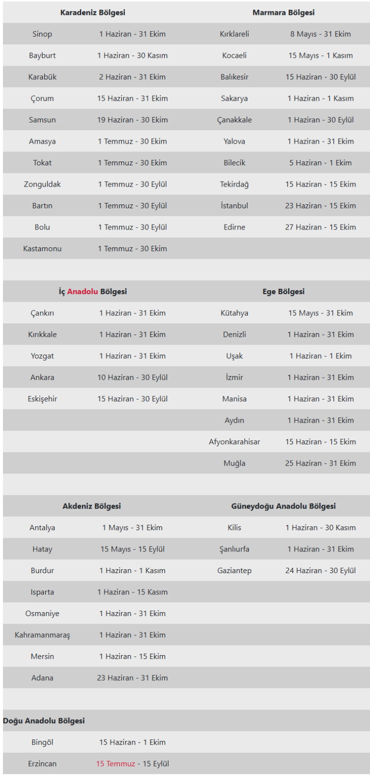 Türkiye genelinde 1 Mayıs itibarıyla ormanlara girişin yasaklandığı iller ve tarihler şöyle: