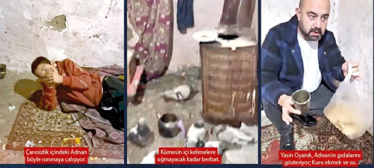 Ankara'da güvercin kümesinde kuru ekmek ve suyla beslenen 12 yaşındaki Adnan'ın görüntüsü infial yarattı. Öz amcası tarafından yıllarca güvercin kümesinde tutulan Adnan'ı Ankara Abisi Derneği Başkanı Yasin Oyanık kurtardı. Ortaya çıkan görüntüler ise vicdanları sızlatırken, Bakanlık da harekete geçti.