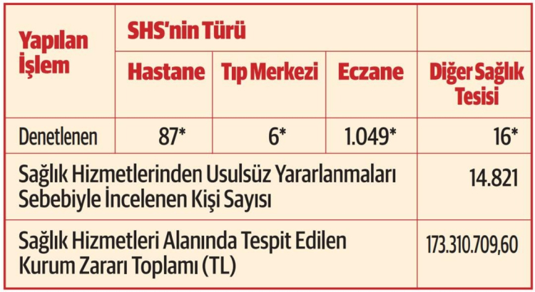 Karakaş "Söz konusu sayılar, kaç farklı Sağlık Hizmet Sunucularının denetlendiğini ifade ettiğinden Tablo’da yer alan rapor sayıları ile farklılık göstermektedir. Örneğin bir rapor birden fazla SHS hakkında düzenlenebileceği gibi bir SHS hakkında da birden fazla farklı rapor düzenlenebilmektedir" notunu da ekledi.