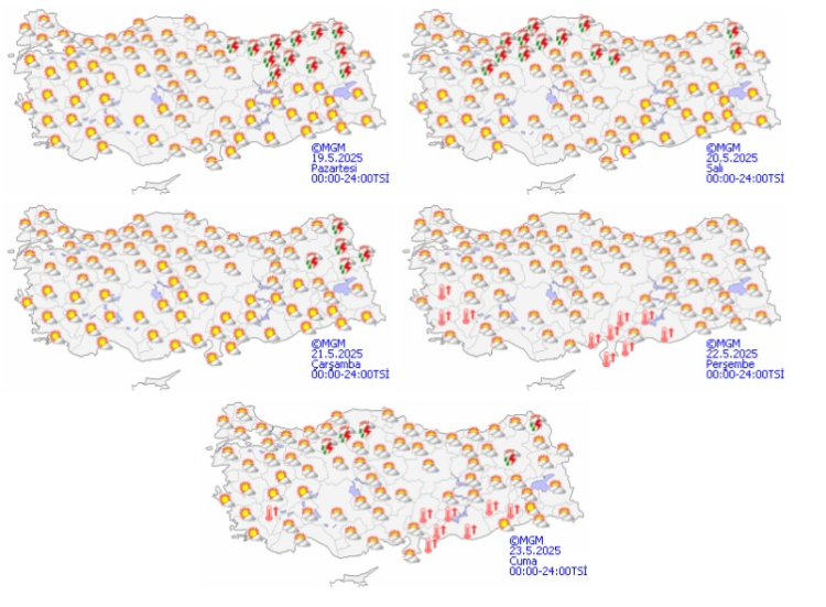 Türkiye, haftaya yağışla başlayacak. Özellikle kuzey ve doğu bölgelerde sağanak ve gök gürültülü sağanak etkili olacak. Çarşambadan itibaren güneyden başlayarak sıcaklığın yükseleceği tahmin ediliyor.